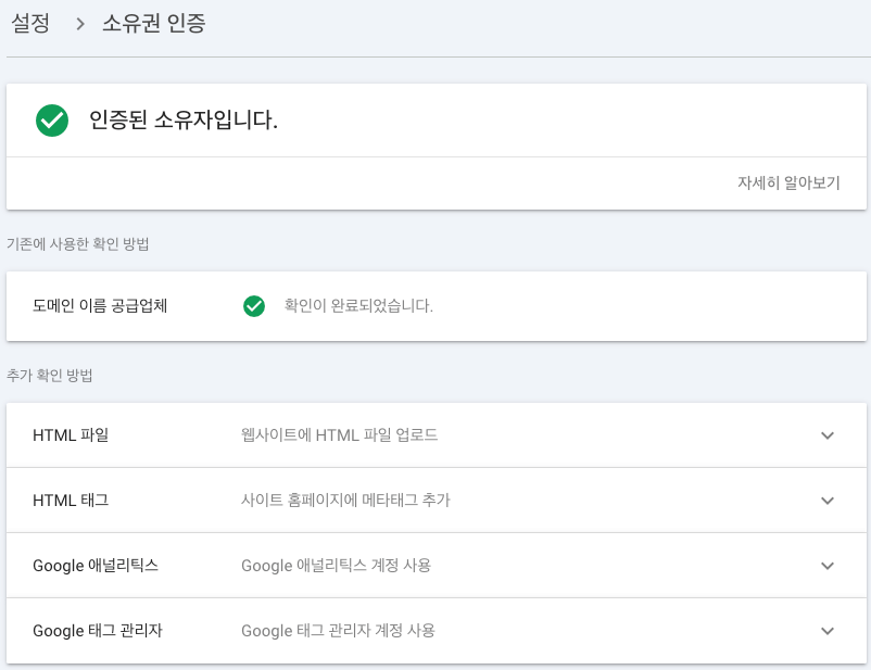- 저장 후 다시 구글 서치 콘솔에서 [확인] 버튼 클릭